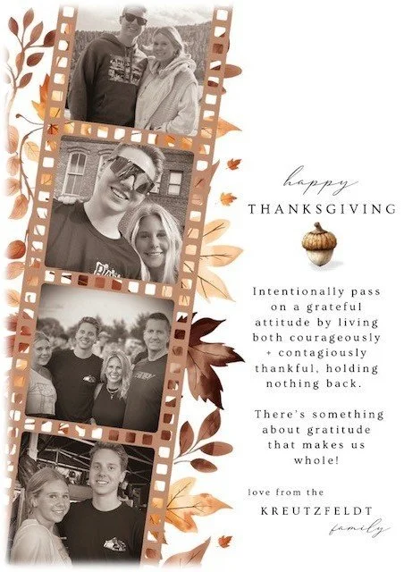 To spread our attitude of gratitude, we must insist on being courageously + contagiously thankful. That means we do it with our whole hearts, holding nothing back.